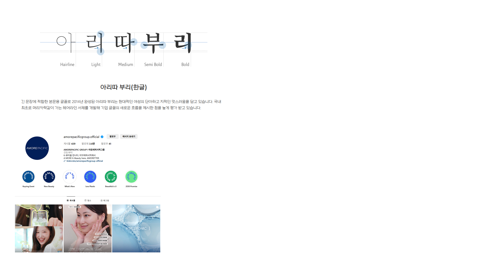 브랜드에서 자주 사용하는 색상과 브랜드에서 만든 아리따 부리 글씨체를 토대로 영상을 제작하였다.
